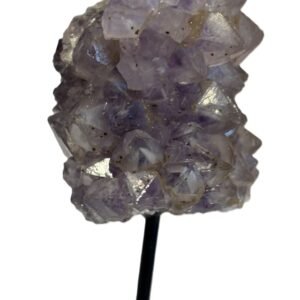 Discover the captivating beauty of this amethyst freeform on a metal stand, a remarkable specimen boasting rich, deep purple tones and an impressive natural formation. Its intricate structure and vibrant colour make it an ideal addition to any crystal collection.