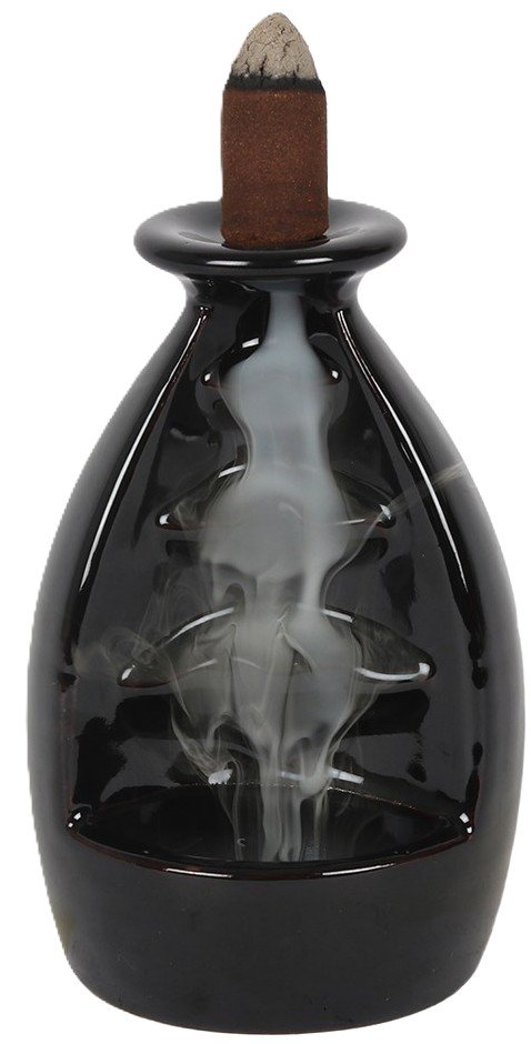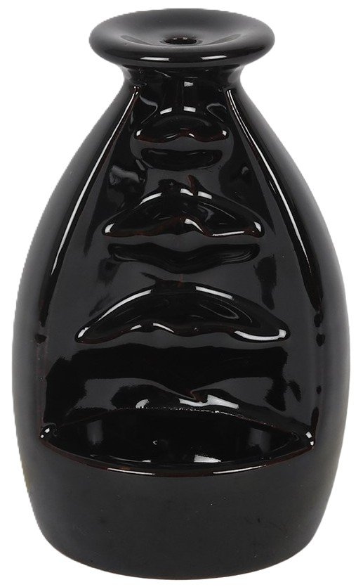 Crafted from sleek black ceramic, the Cocoon Backflow cone Burner features a rounded, cocoon-like design that transforms smoke into a visual meditation. When a backflow cone is placed atop the burner, aromatic smoke gently cascades down a series of sculpted tiers, pooling below in a mesmerising display that evokes stillness and flow.