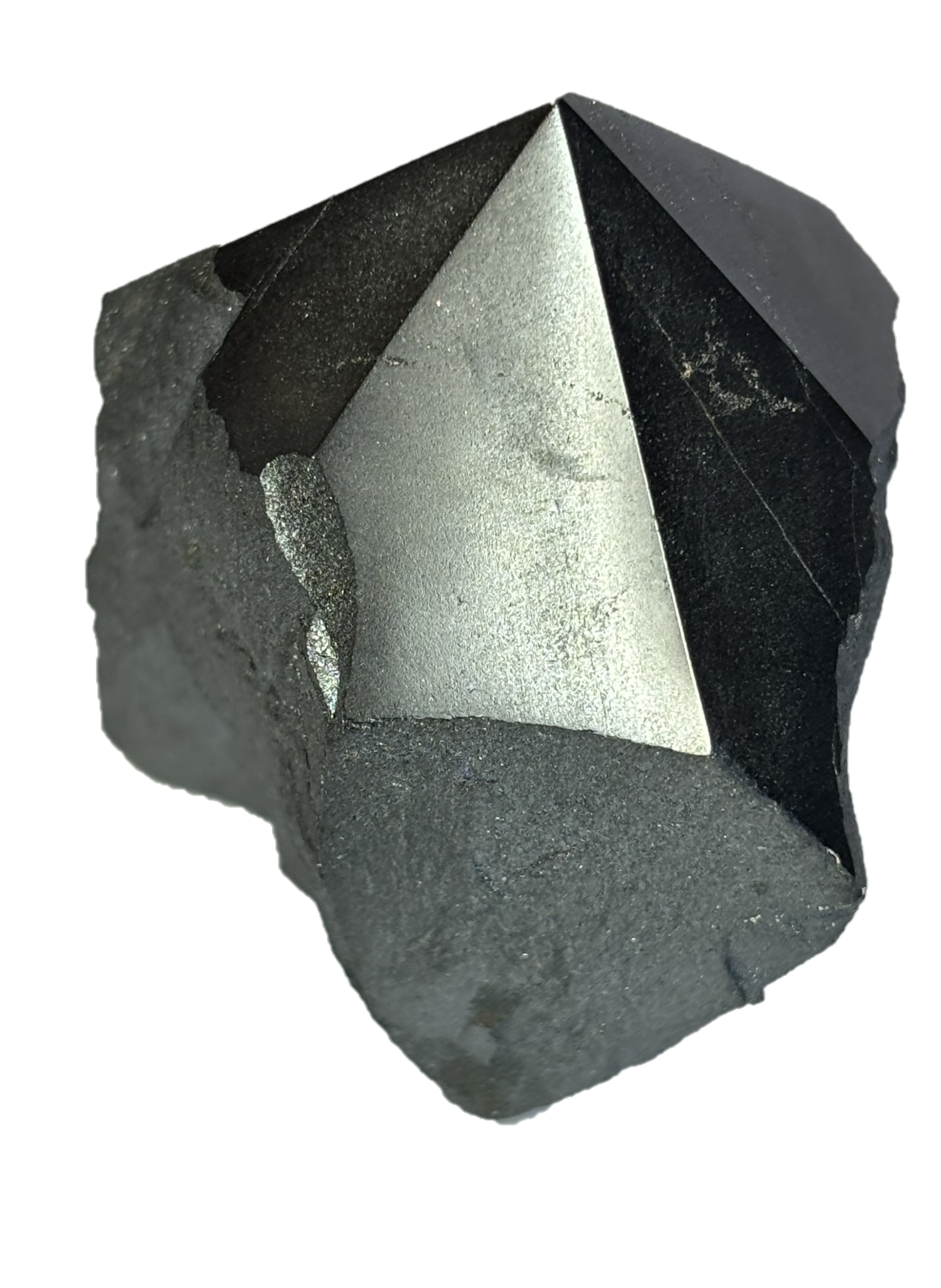 Known for its protective and grounding energy, Hematite shields against negativity and fosters courage, focus, and emotional stability.The six-sided shape adds geometric elegance, enhancing its energetic flow and symbolism of balance. Perfect for meditation, grounding practices, or as an eye-catching display piece, this hematite point captures both the raw power and polished beauty of the natural world.