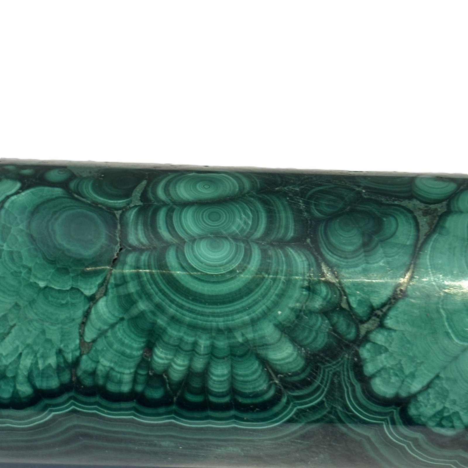 Experience the vibrant allure of this polished malachite specimen—a striking tribute to nature’s artistry. Rich green hues intertwine with intricate concentric banding and swirling patterns, creating a captivating visual effect. Its smooth, glossy surface amplifies the stone’s innate beauty, elevating it as a standout in any collection or display.