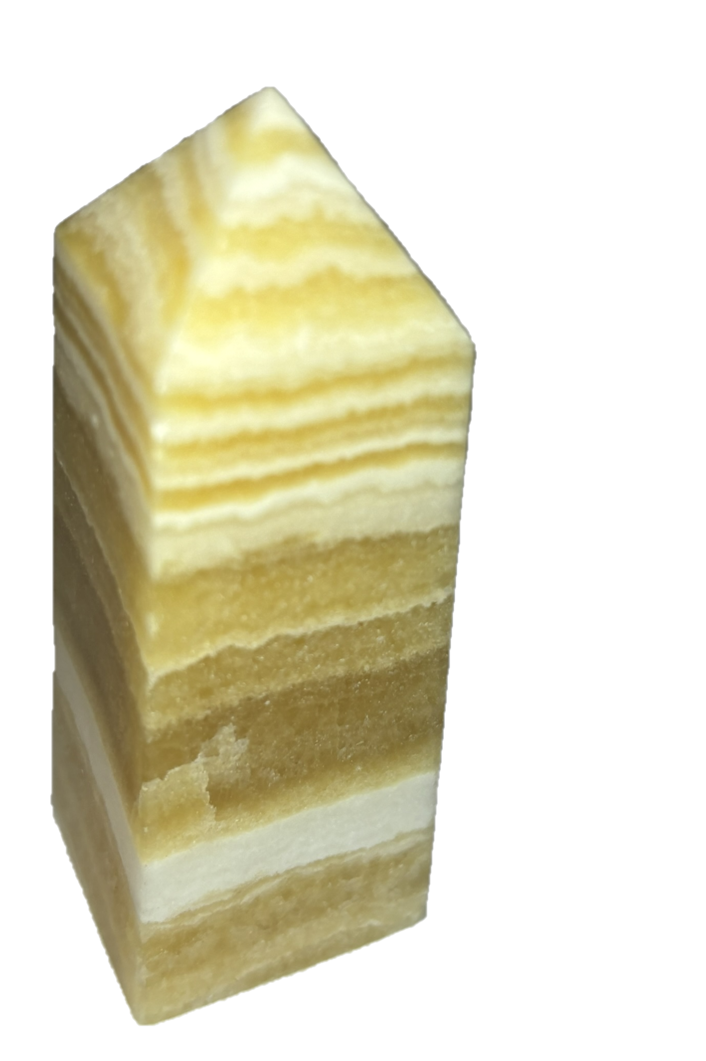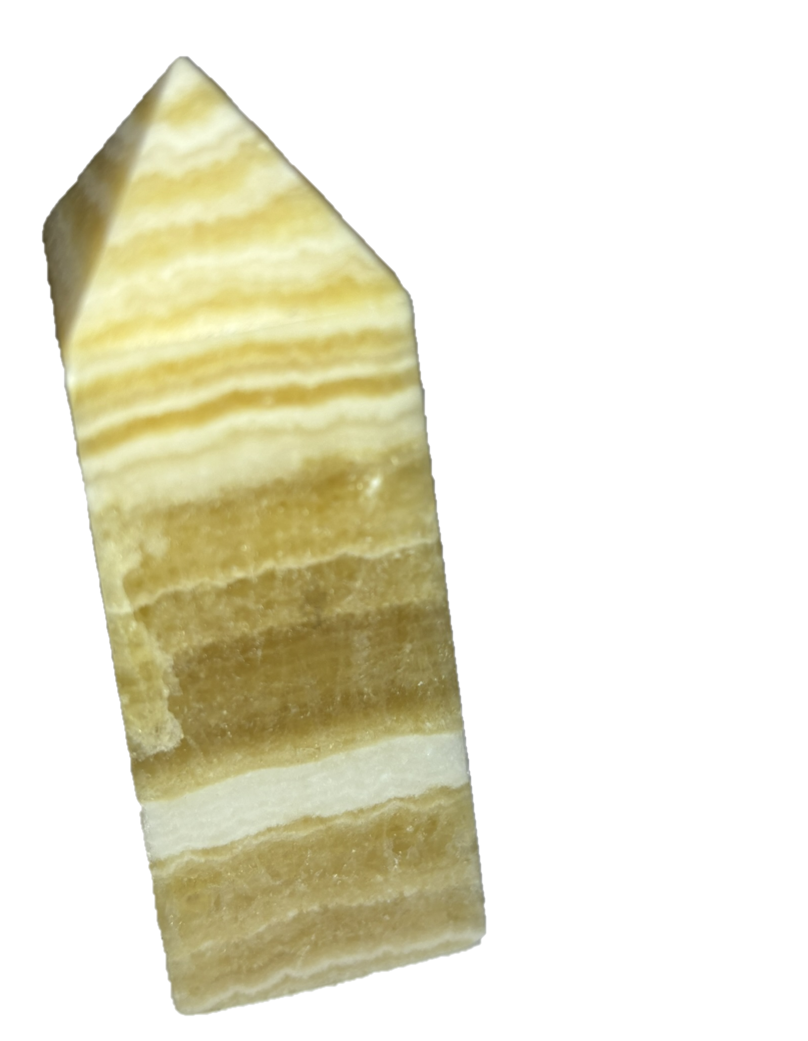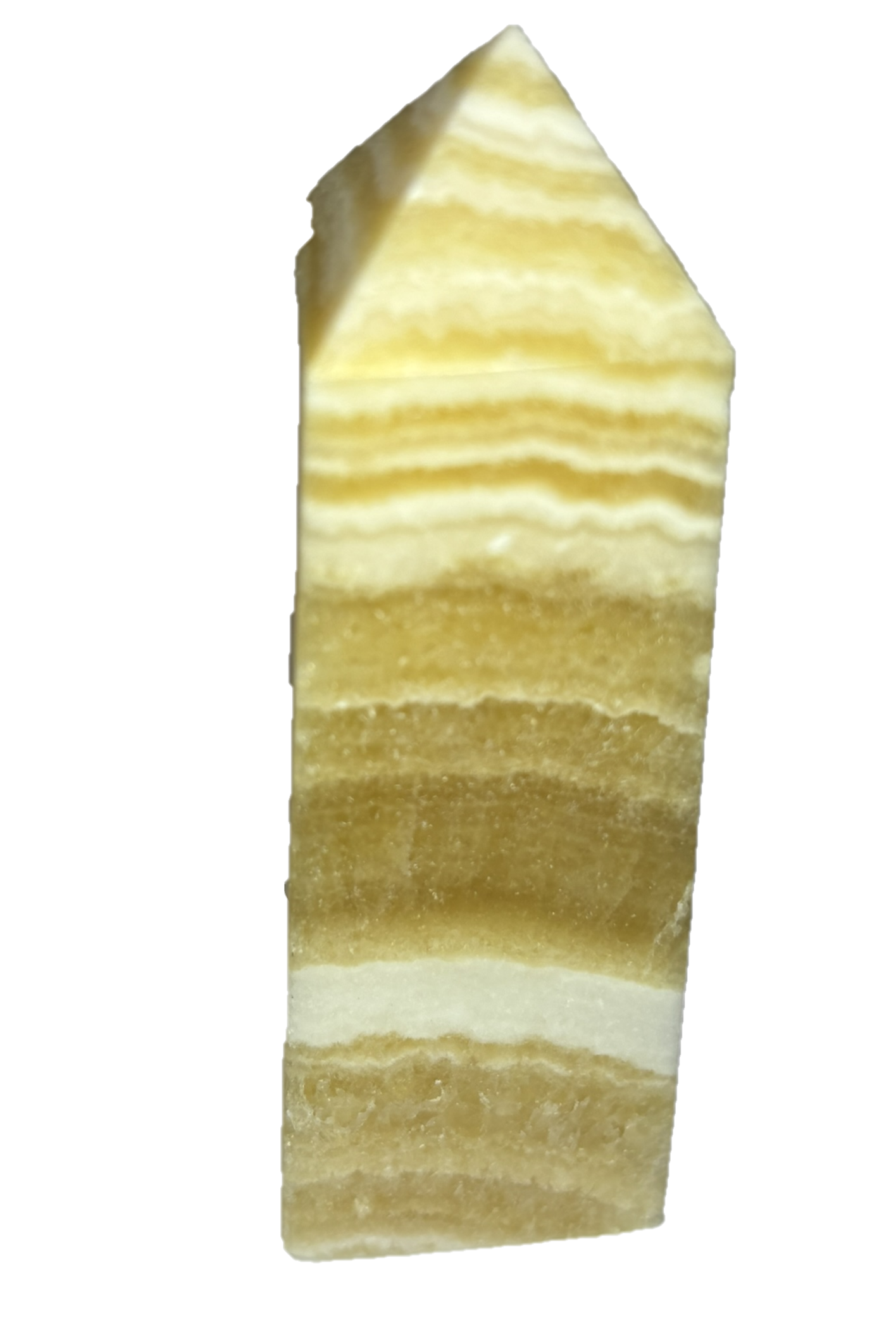 This vibrant orange calcite point showcases a masterful contrast of polished and natural surfaces. The cut and polished tip reveals the crystal’s translucent structure and stunning fiery hues, while the natural sides preserve its raw, earthy charm. A captivating combination that highlights the unique allure of orange calcite, perfect for collectors and crystal enthusiasts alike.