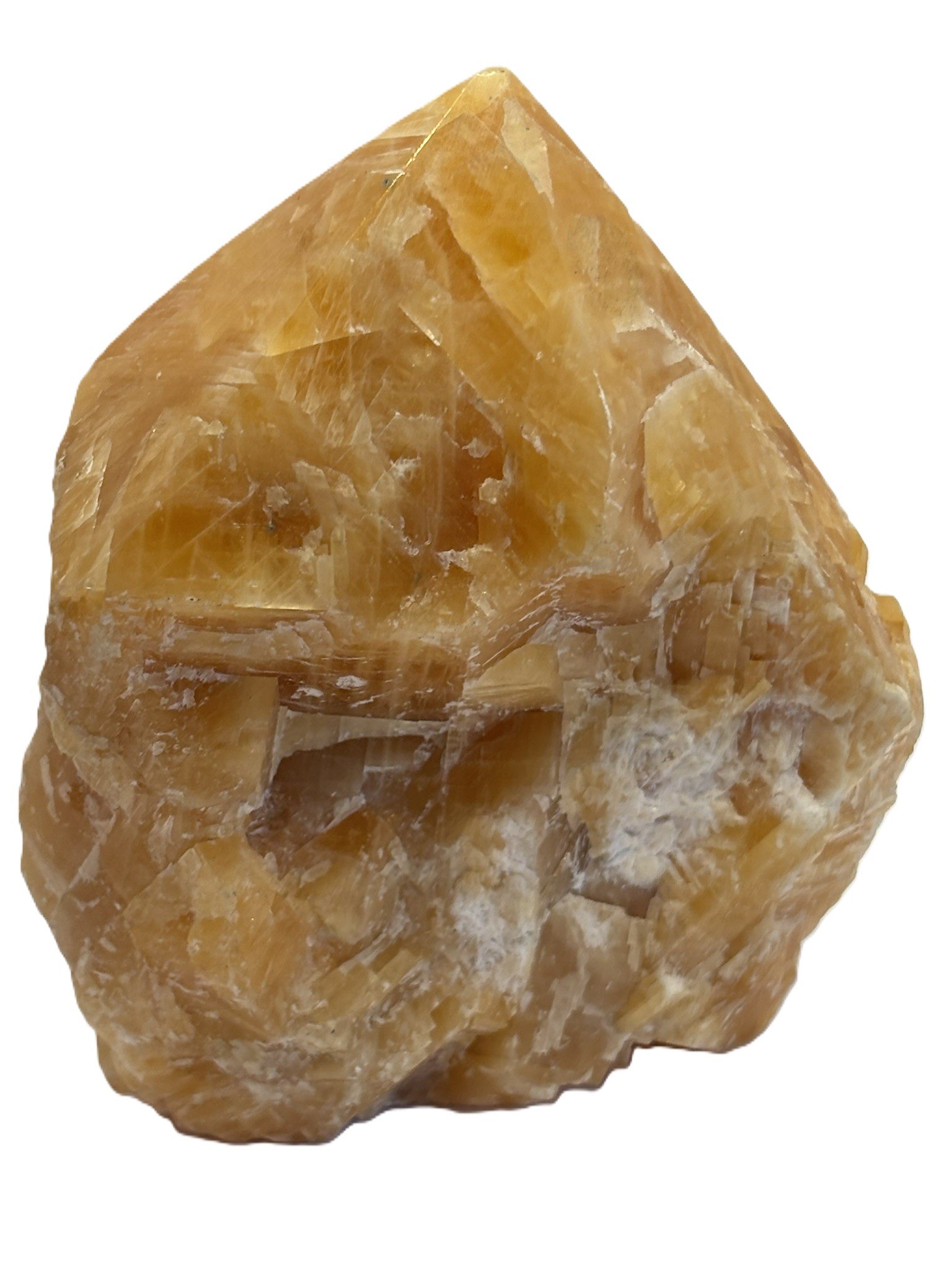 Add energy and elegance to your collection with this Orchid Calcite crystal point, featuring a striking polished tip and rugged, natural sides. The vibrant orange hue, complemented by translucent and opaque areas, brings warmth and vitality to any space. The polished point enhances its energy-directing properties, while the raw sides showcase its organic, untouched beauty.