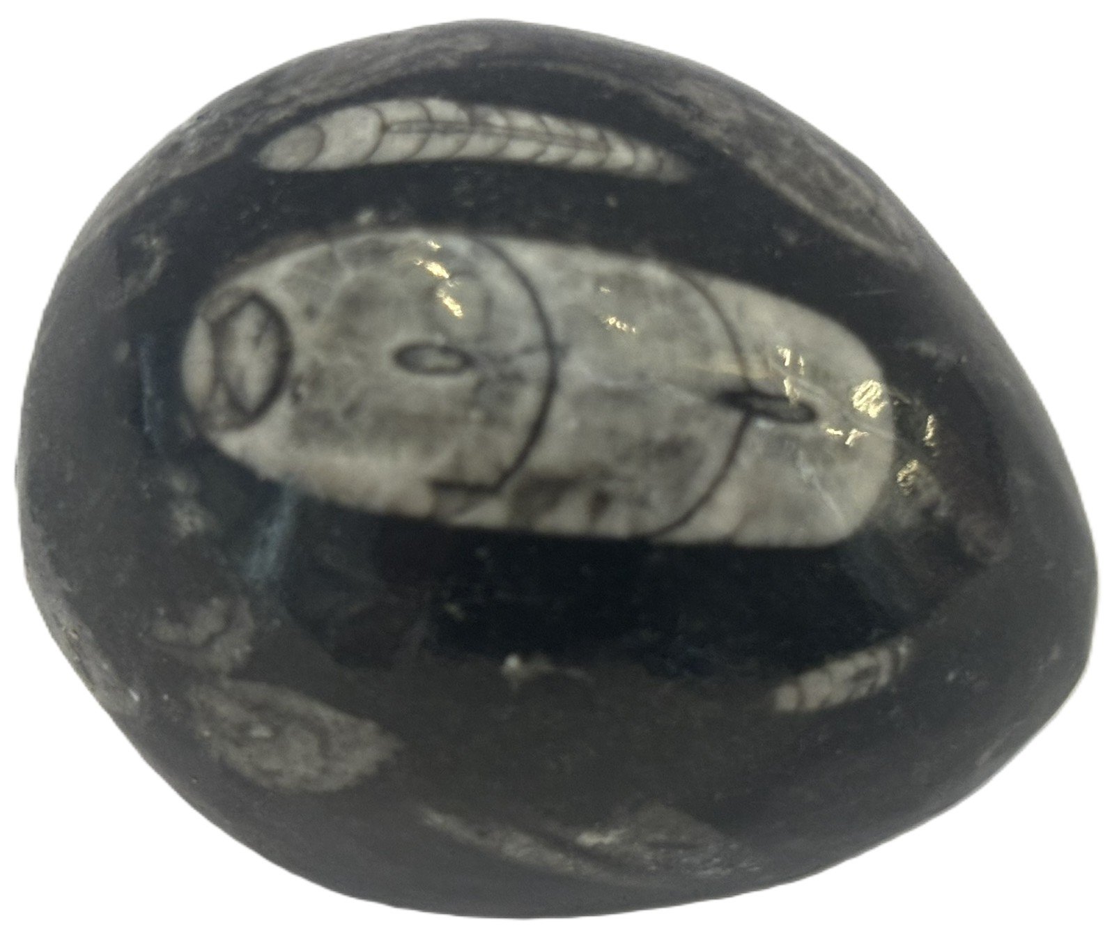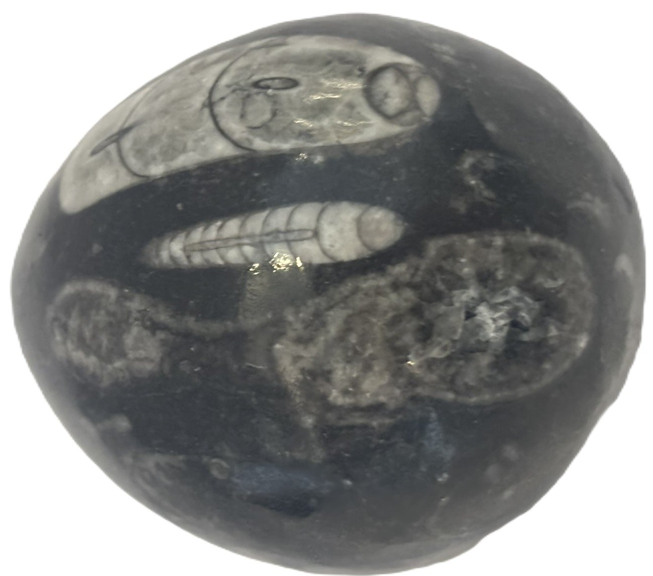 This polished Orthoceras fossil egg features a centralised fossilised remains of an extinct marine cephalopod from the Devonian period, approximately 400 million years ago. Sourced from the sedimentary limestone beds of Morocco, each specimen displays the distinctive chambered shell structure characteristic of Orthoceras, offering a direct link to Earth’s palaeontological record.