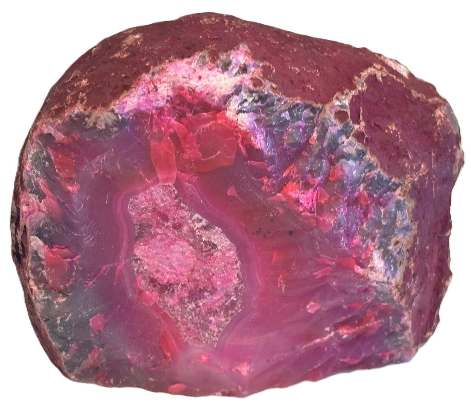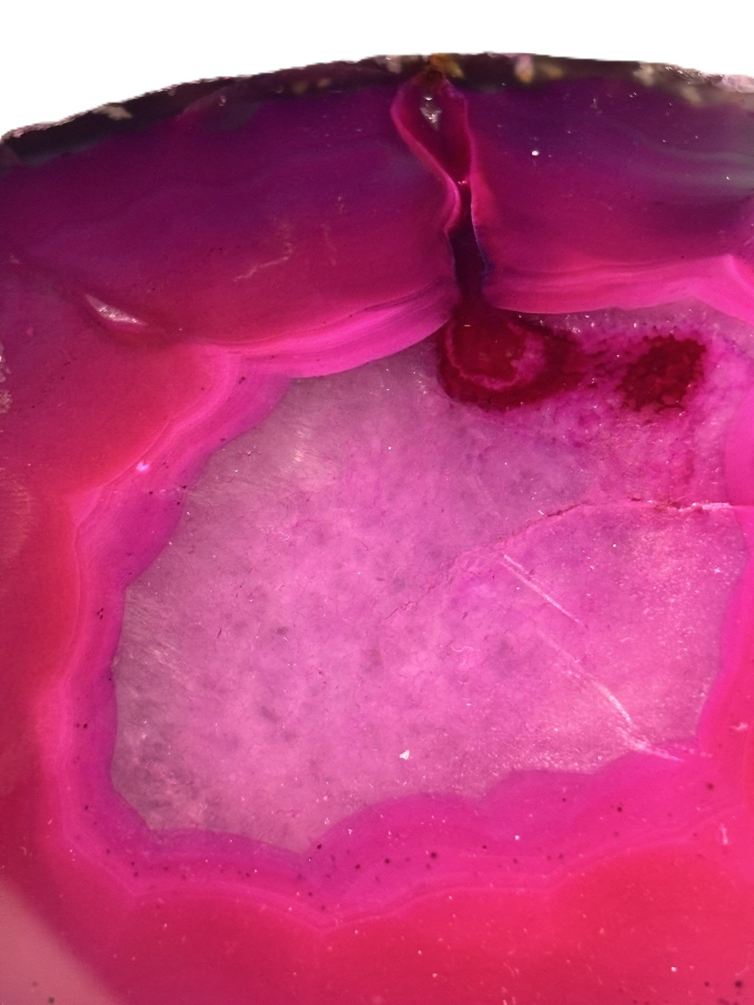 Enhance your home or workspace with this eye-catching gemstone. Whether displayed on a shelf, desk, or mantle, the Pink Agate Half Geode brings an air of sophistication and tranquility, effortlessly complementing a variety of interior styles.