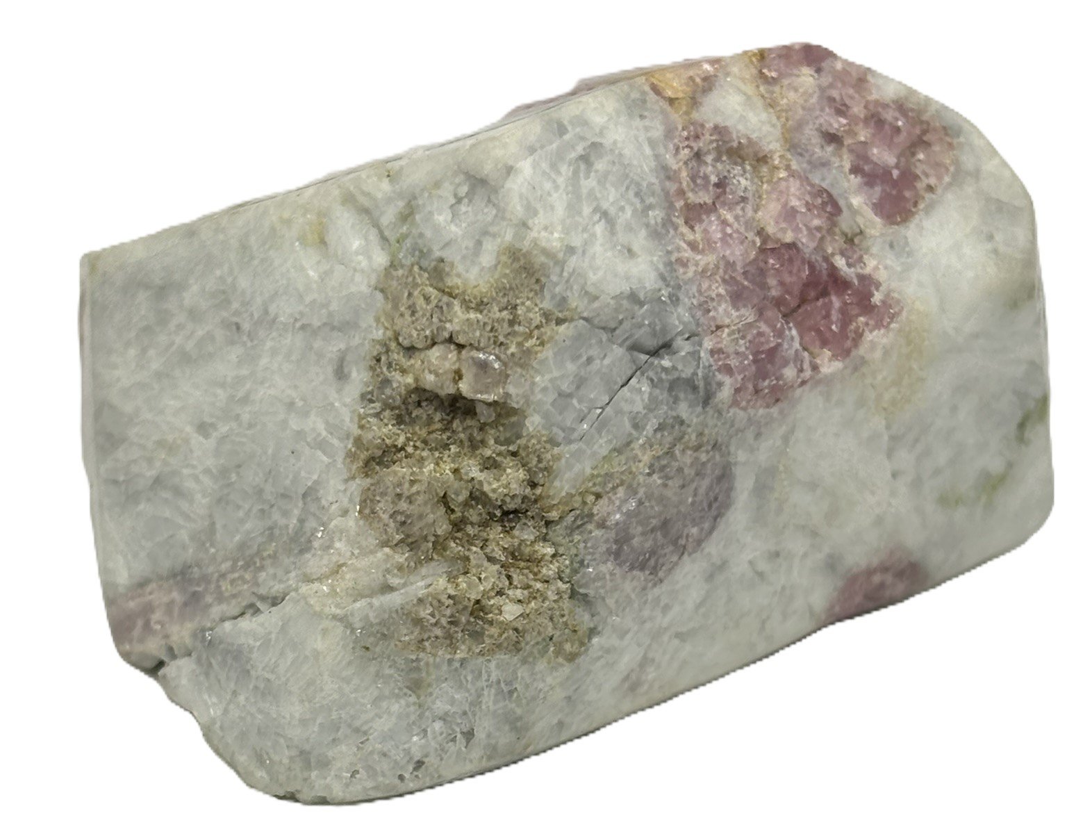 This striking pink tourmaline point blends rugged beauty with delicate charm. Its triangular shape and pointed tip pair with soft pink hues and earthy tones to create a visually captivating piece. Rough sides showcase the stone’s raw essence, while the intentional design elevates it as a standout in any collection.
