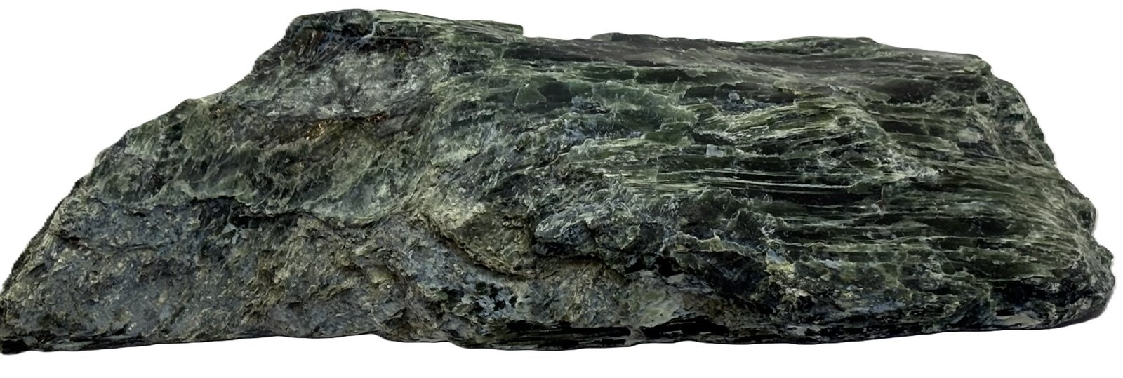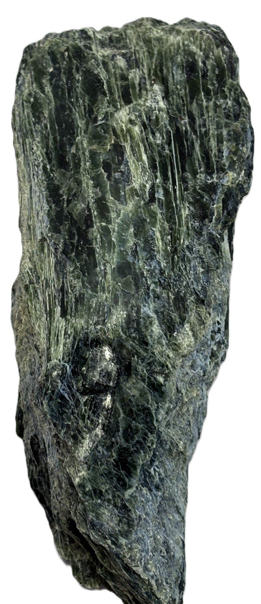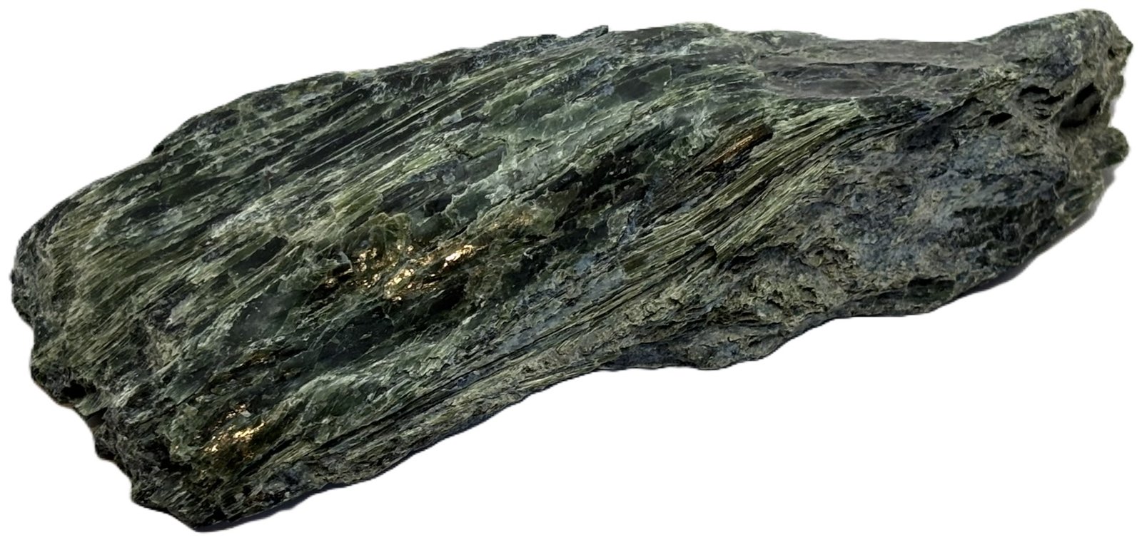 Celebrate the natural beauty of this serpentine specimen, a captivating piece that showcases a harmonious blend of dark green and lighter green hues. Its polished surface reveals intricate patterns and shimmering highlights, while subtle white and gold specks add a touch of elegance. This unique mineral specimen is a stunning addition to any collection or display.
