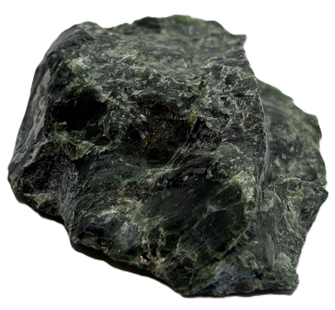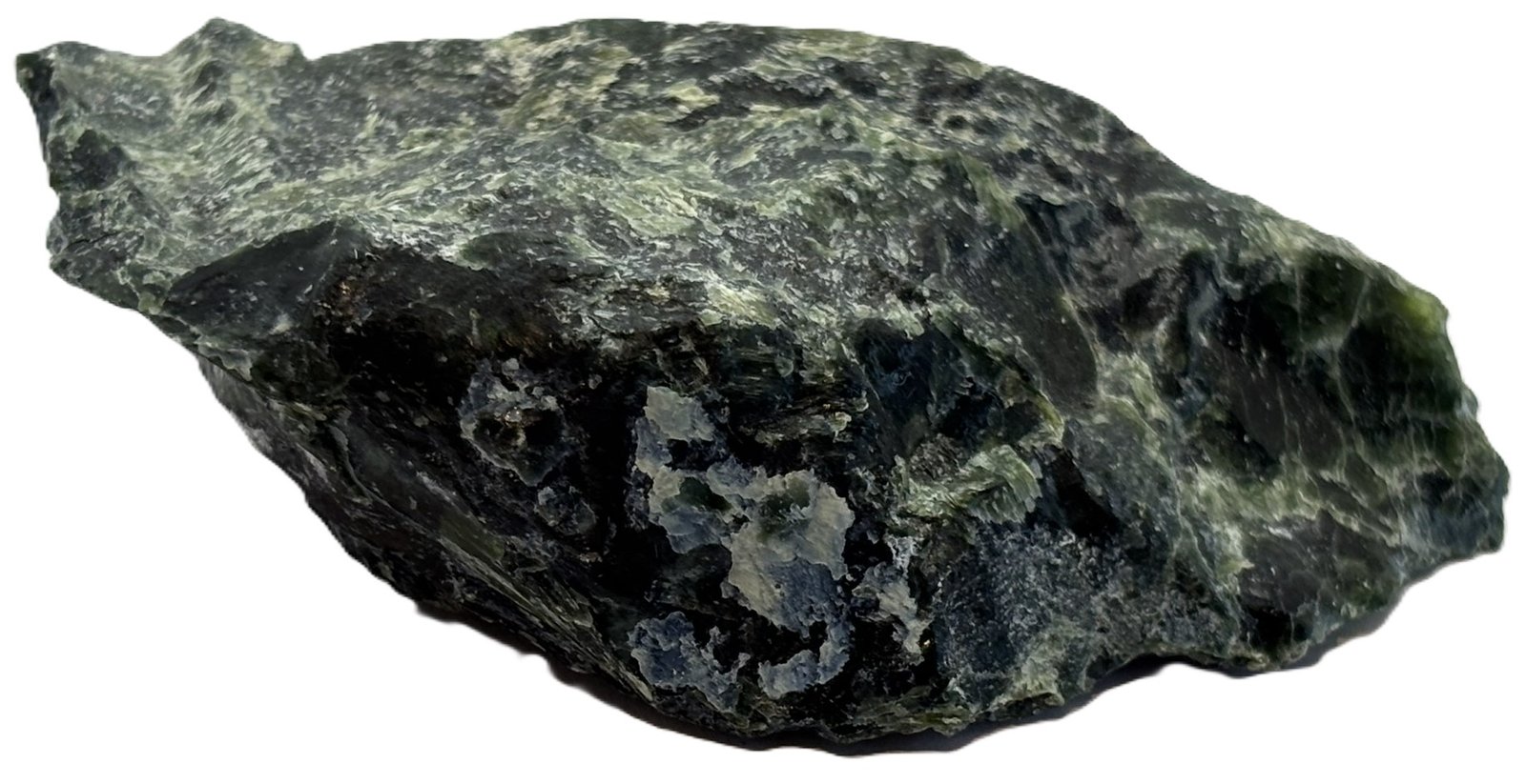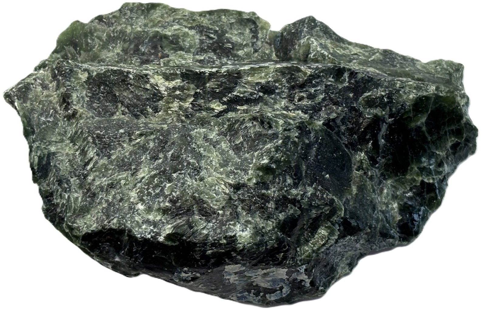 Celebrate the natural beauty of this serpentine specimen, a captivating piece that showcases a harmonious blend of dark green and lighter green hues. Its polished surface reveals intricate patterns and shimmering highlights, while subtle white and gold specks add a touch of elegance. This unique mineral specimen is a stunning addition to any collection or display.