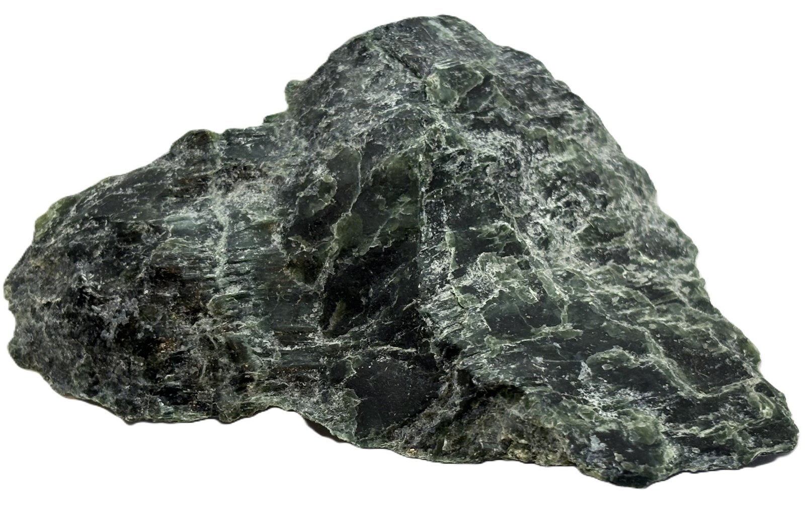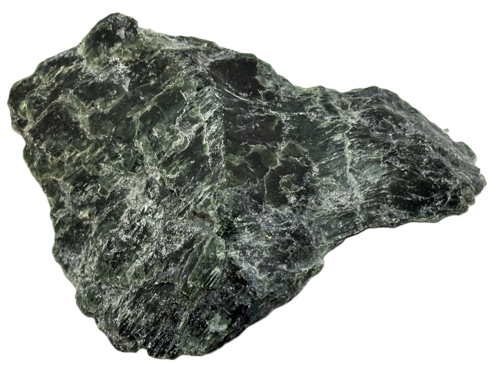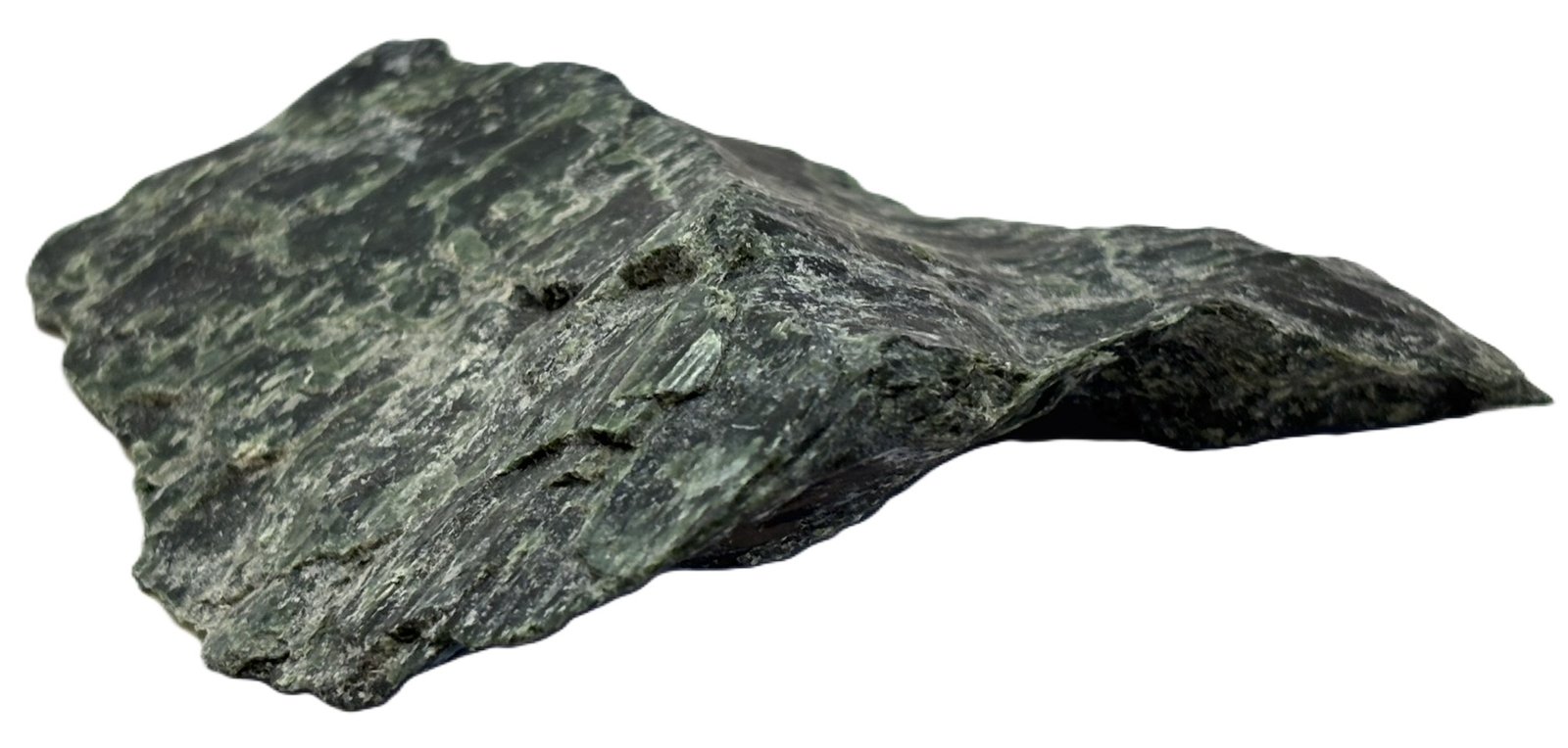 Celebrate the natural beauty of this serpentine specimen, a captivating piece that showcases a harmonious blend of dark green and lighter green hues. Its polished surface reveals intricate patterns and shimmering highlights, while subtle white and gold specks add a touch of elegance. This unique mineral specimen is a stunning addition to any collection or display.
