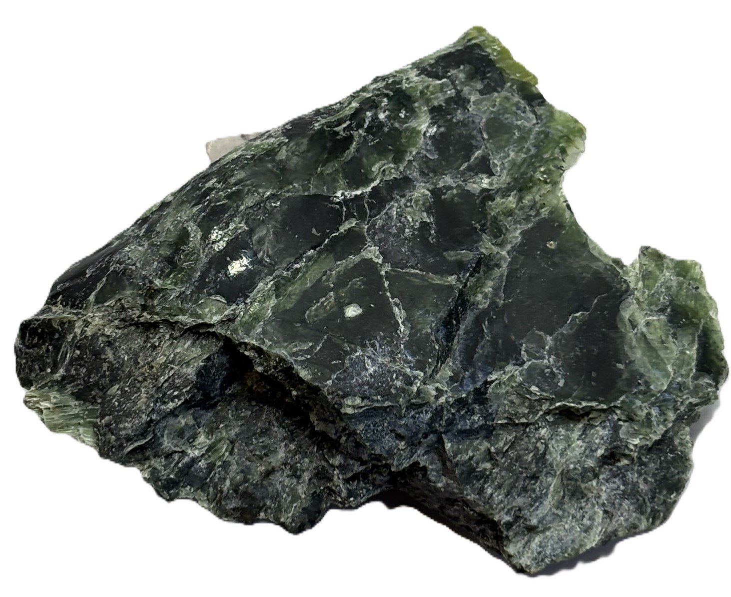 Celebrate the natural beauty of this serpentine specimen, a captivating piece that showcases a harmonious blend of dark green and lighter green hues. Its polished surface reveals intricate patterns and shimmering highlights, while subtle white and gold specks add a touch of elegance. This unique mineral specimen is a stunning addition to any collection or display.